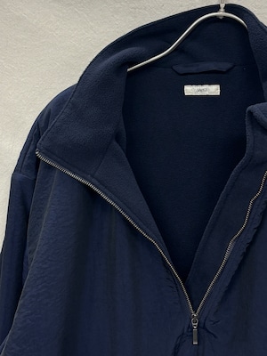 表面は、ナイロン × シルクの塩縮タフタ、裏面には軽量で保温力もあるリサイクルポリエステルフリースを搭載したプルオーバージャケットです。