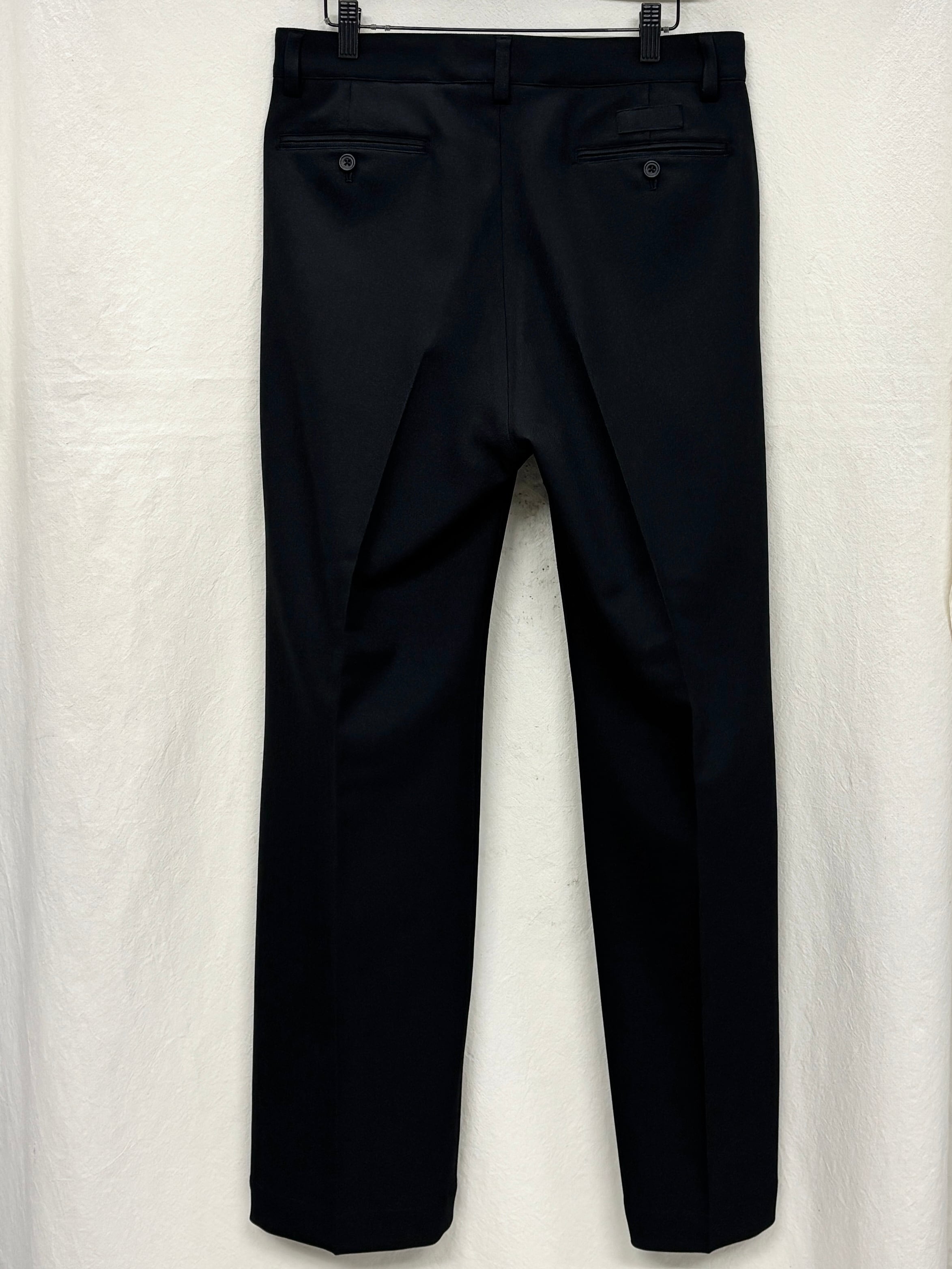 パターンは腰回りとヒップ周りを綺麗に人体にそうよう立体的に引き、渡りからはテーパードになっている。
