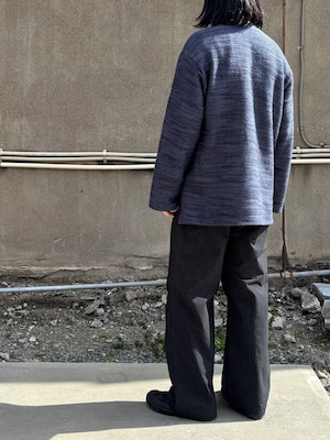 緯⽷にボイル⽷を使⽤することにより独特なハリ感を出し、ワッシャー加⼯を施しきめ細かい凹凸を表現。