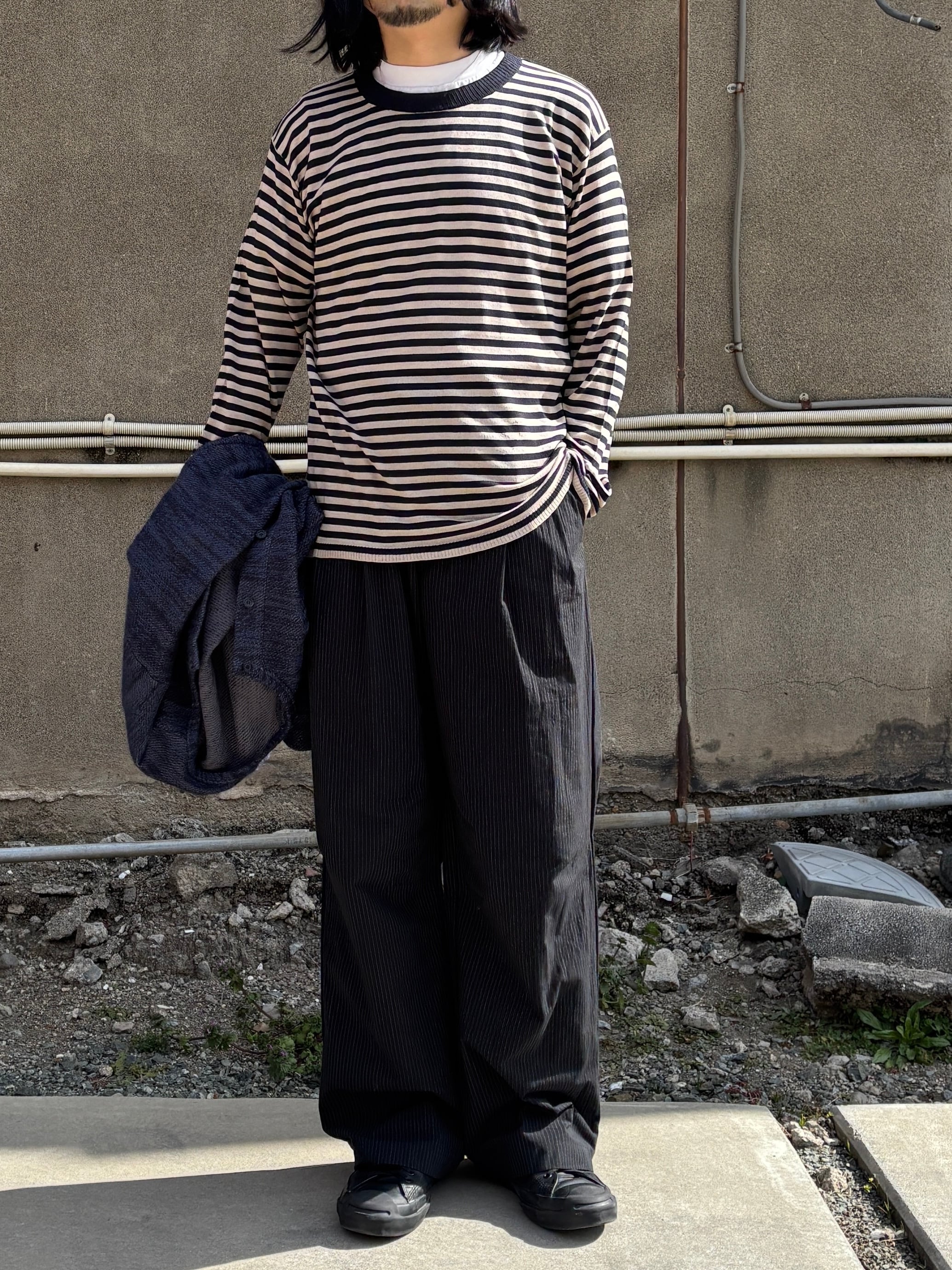 MATSUFUJI / Striped Wide Trousers (BLACK STRIPE)