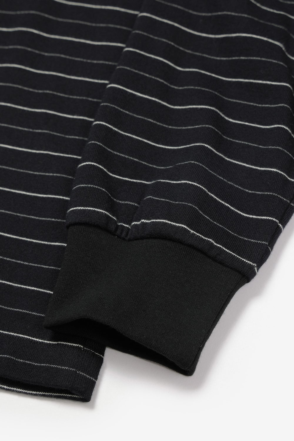 洗いによるパッカリングを防ぐため、袖口・裾口のステッチ幅を狭く設定。